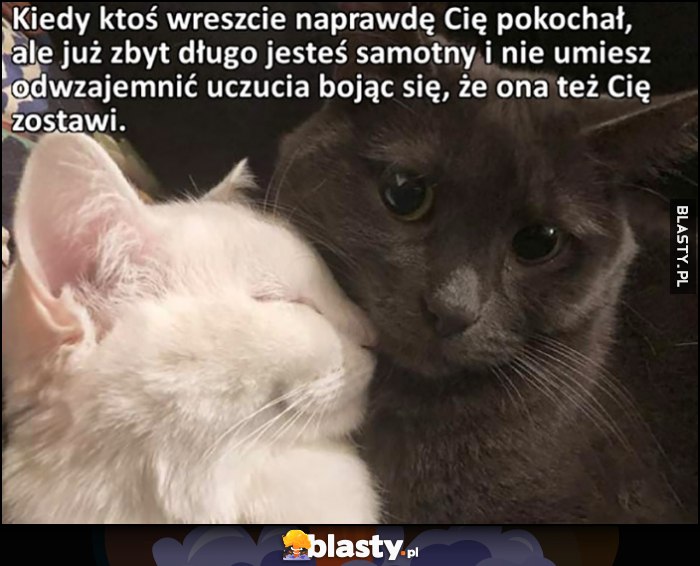 Kot koty kiedy ktoś wreszcie naprawdę Cię pokocha, ale zbyt długo byłeś samotny i nie umiesz odwzajemnić uczucia, boją się, że ona też Cię zostawi
