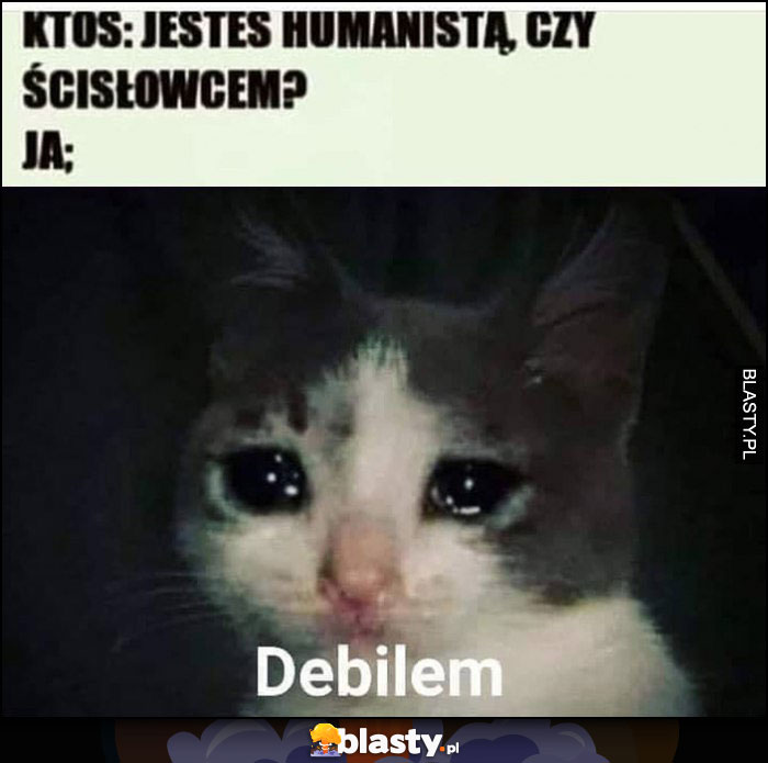 Ktoś: jesteś humanistą czy ścisłowcem? Ja: debilem smutny kot płacze