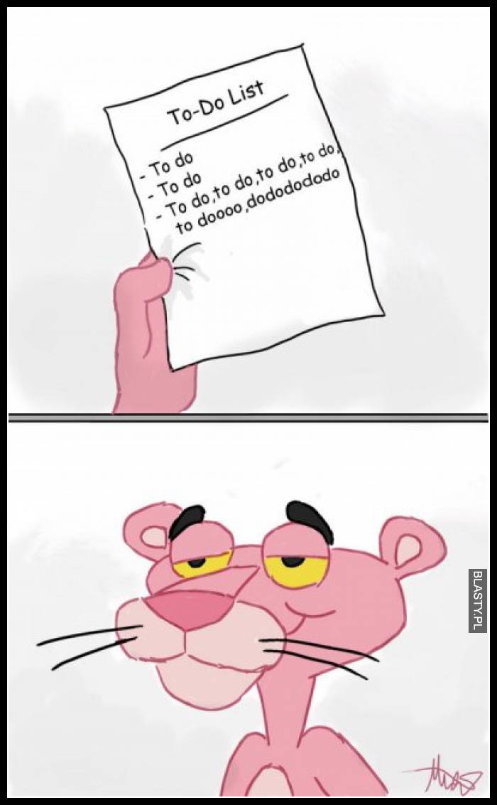 Styczeń: to będzie mój rok, osiągnę w nim wszystko, lipiec: siedzi smutny Różowa Pantera