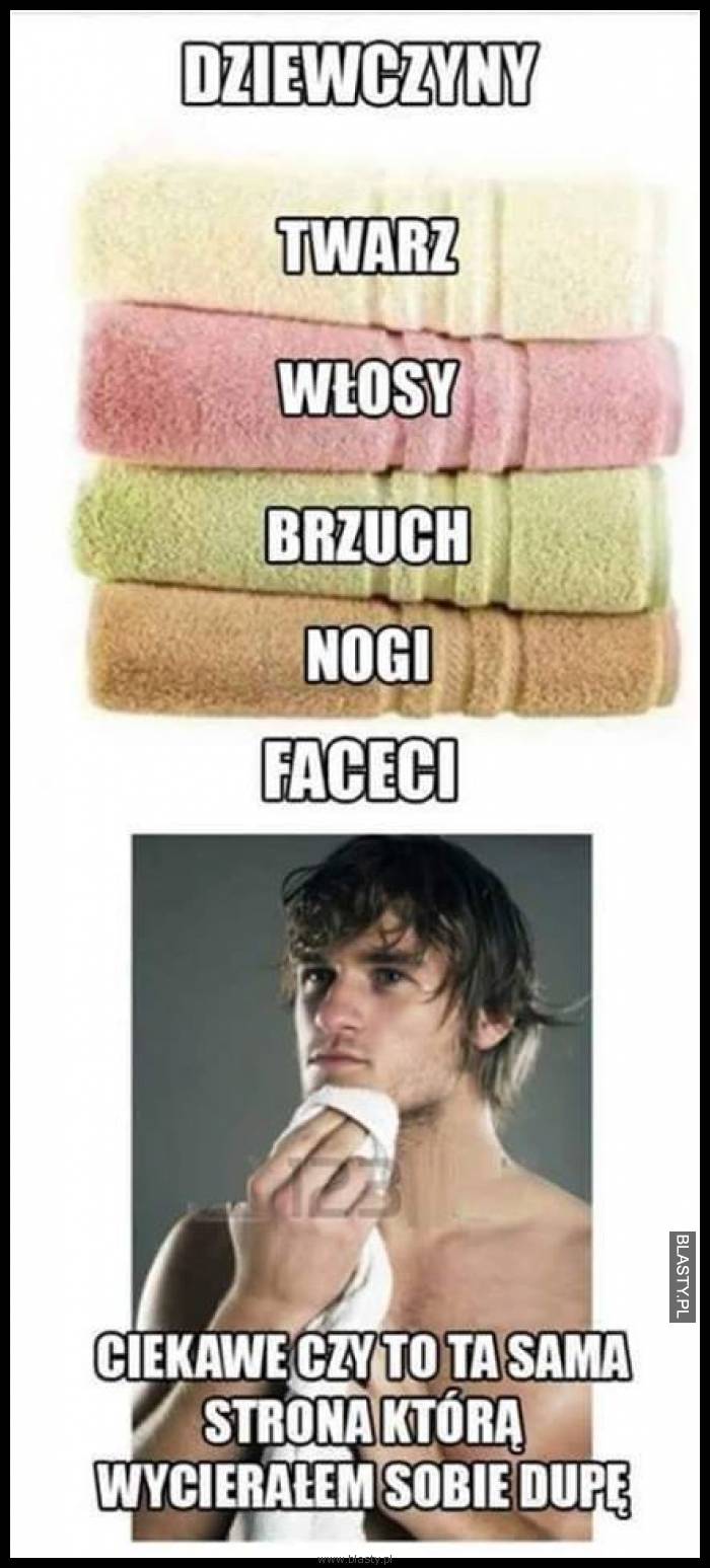 Ja jakoś urzywam tego samego ręcznika a jestem KOBIETĄ ! Jesteście pojebani i przestańcie robić te kurwa żałosne i popierdolone memy bo to jest kurwa żałosne